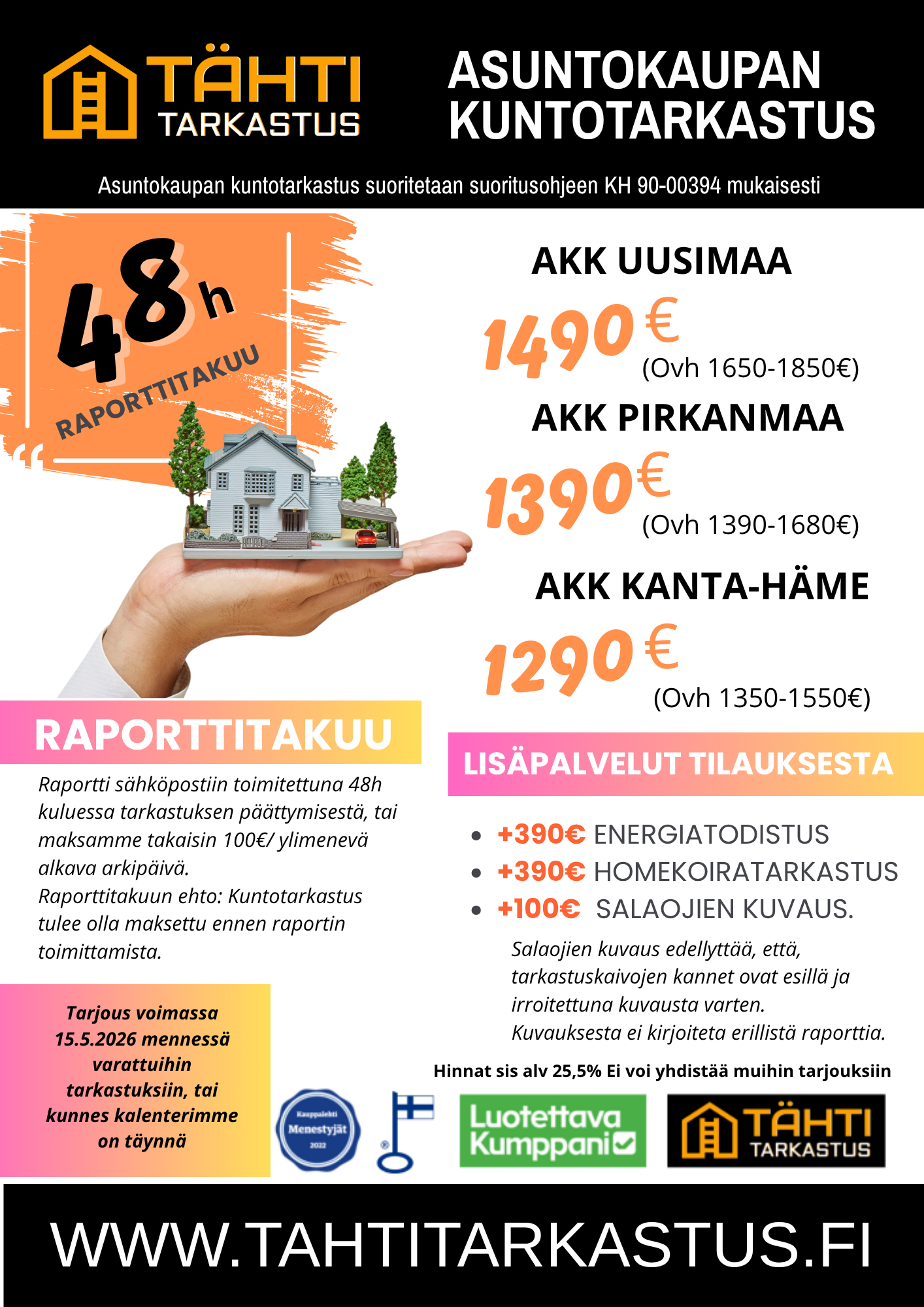 Ammattitaitoiset kuntotarkastajamme tarkastavat asunnot ja kiinteistöt asuntokaupan yhteydessä.
